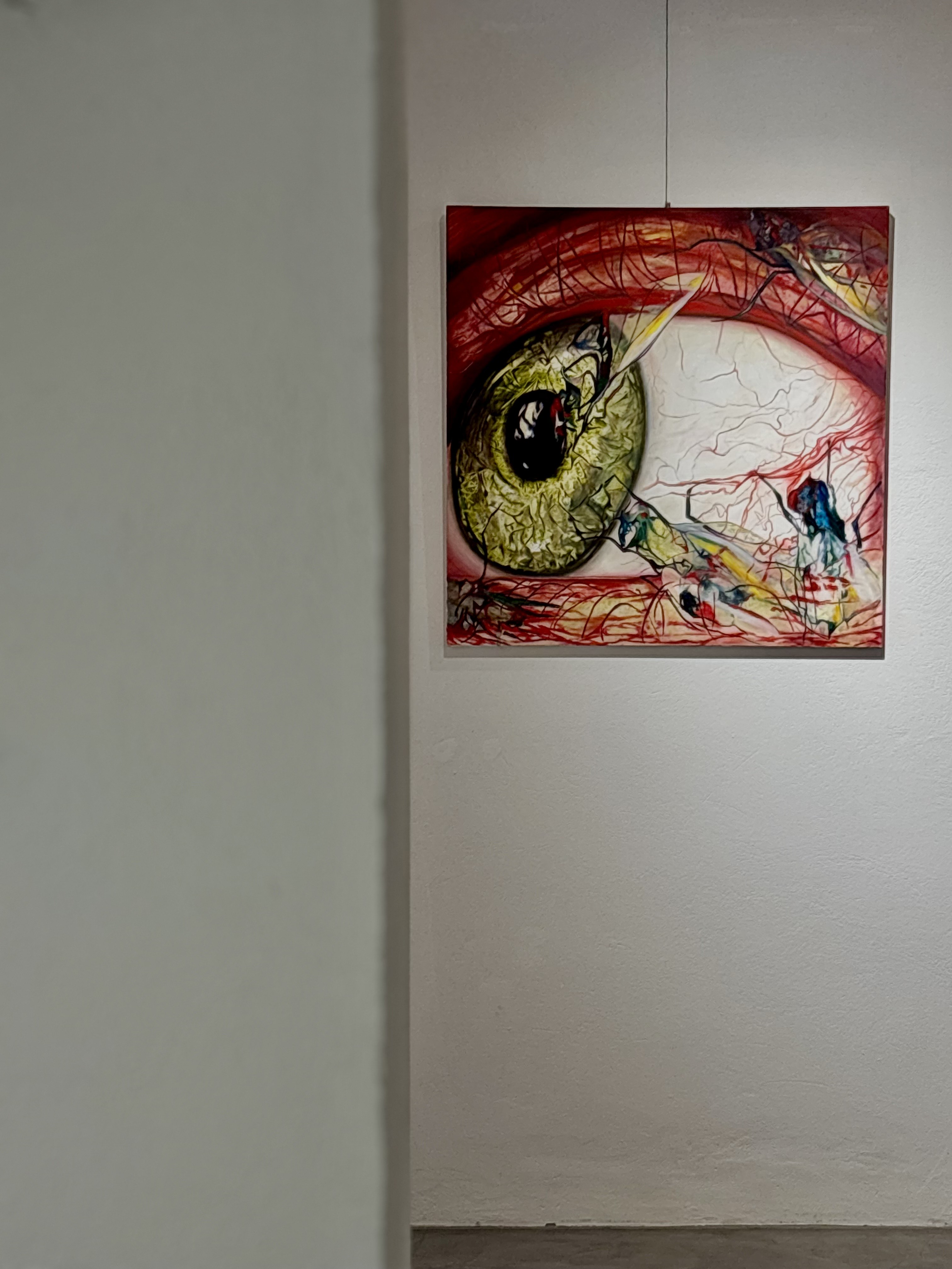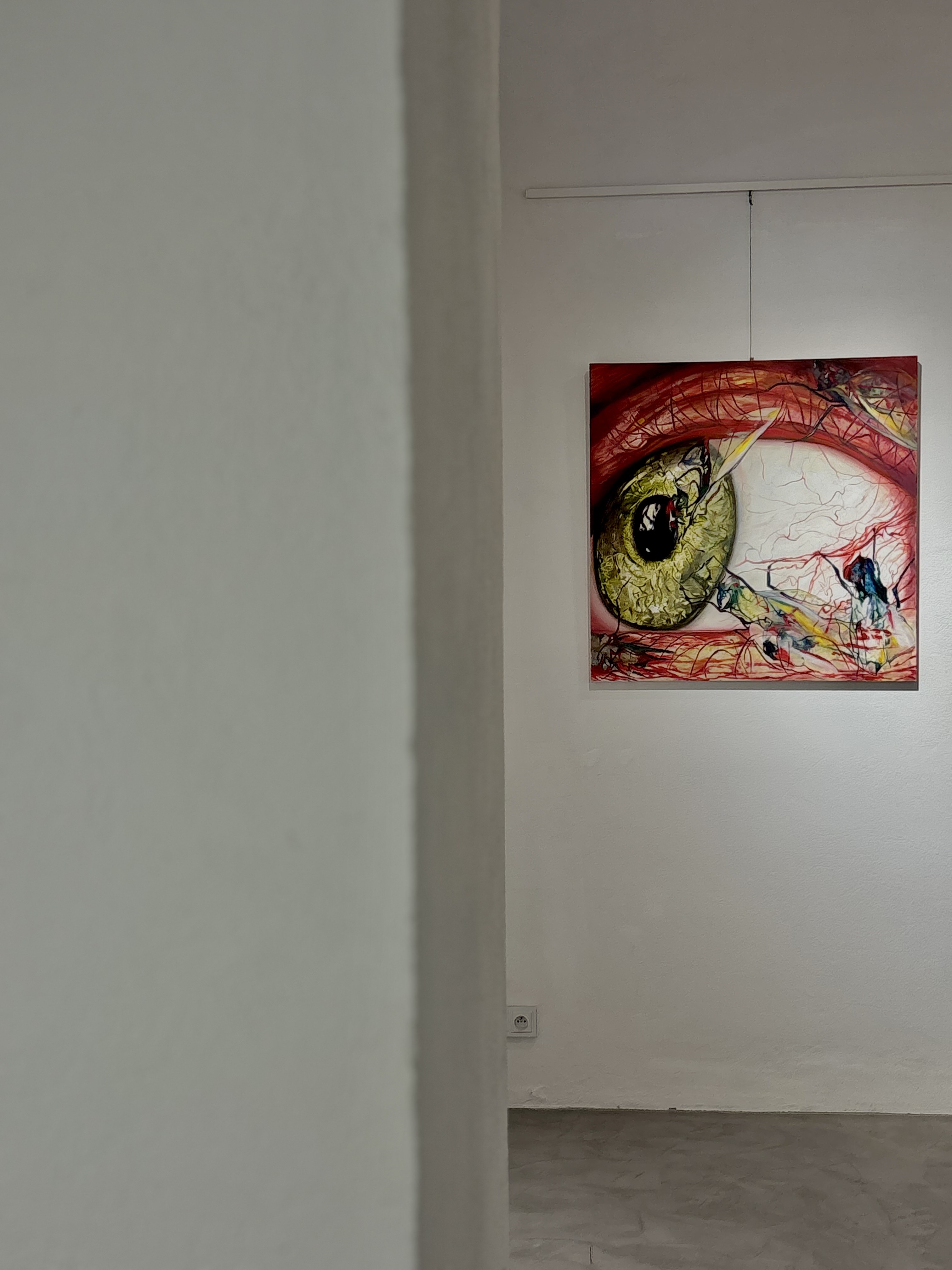 Dorota Bujak 'Z cyklu Wewnętrzne wrzenie VII' olej na płótnie 90x90cm, 2025 6200zł ZAREZERWUJ wizualizacja